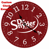 We can create a custom clock for you that includes your company logo, colors, and slogan! Please be sure to send us your logo in a separate email. A mockup will be sent to you to ensure every detail is just right. If you are unsure where to start, feel free to reach out to us!