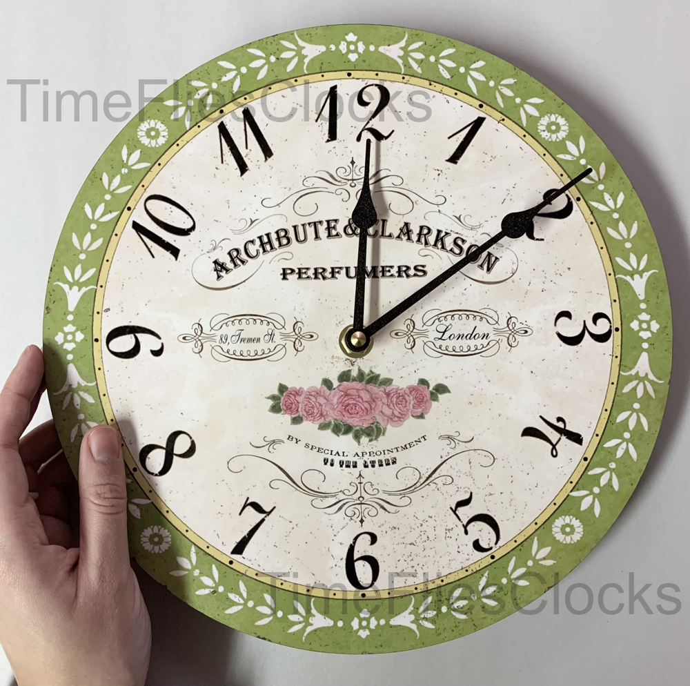 HIGH QUALITY PRECISION: Production Process- Our clocks are produced with fade resistant inks. The artwork is carefully mounted onto a laser cut, 1/4" thick MDF panel. A special UV resistant coating is applied for a durable finish. Dependable quartz clock movements are used. The clock hands are aged to match the antique vintage look of the clock.