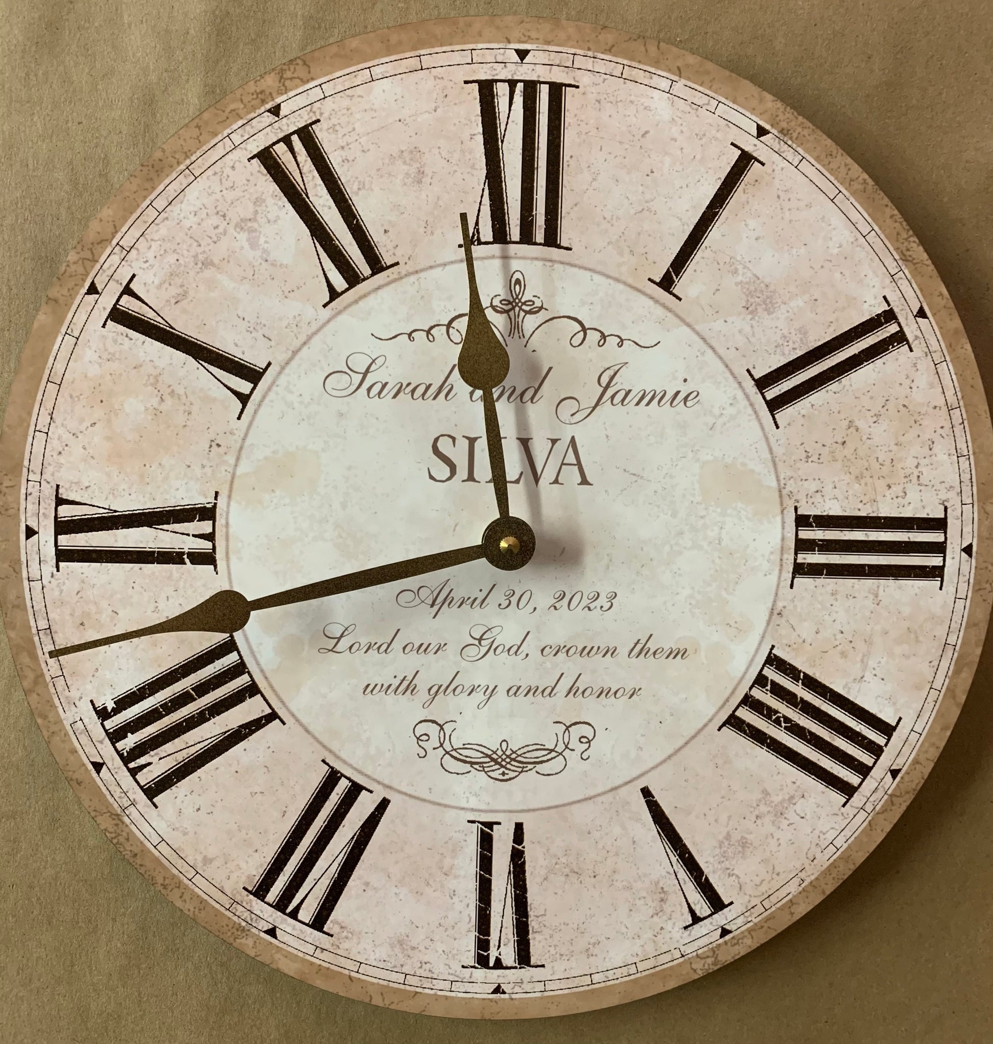 PERSONALIZATION: Leave the exact wording you would like on your clock in the "Special Instructions For Seller" box. (This box will become visible after you add an item to your cart and view your cart.) Please make sure you use exact spelling and punctuation.