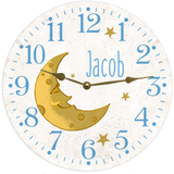 White Baby Clock with Moon and Custom Name- Beautiful and Unique